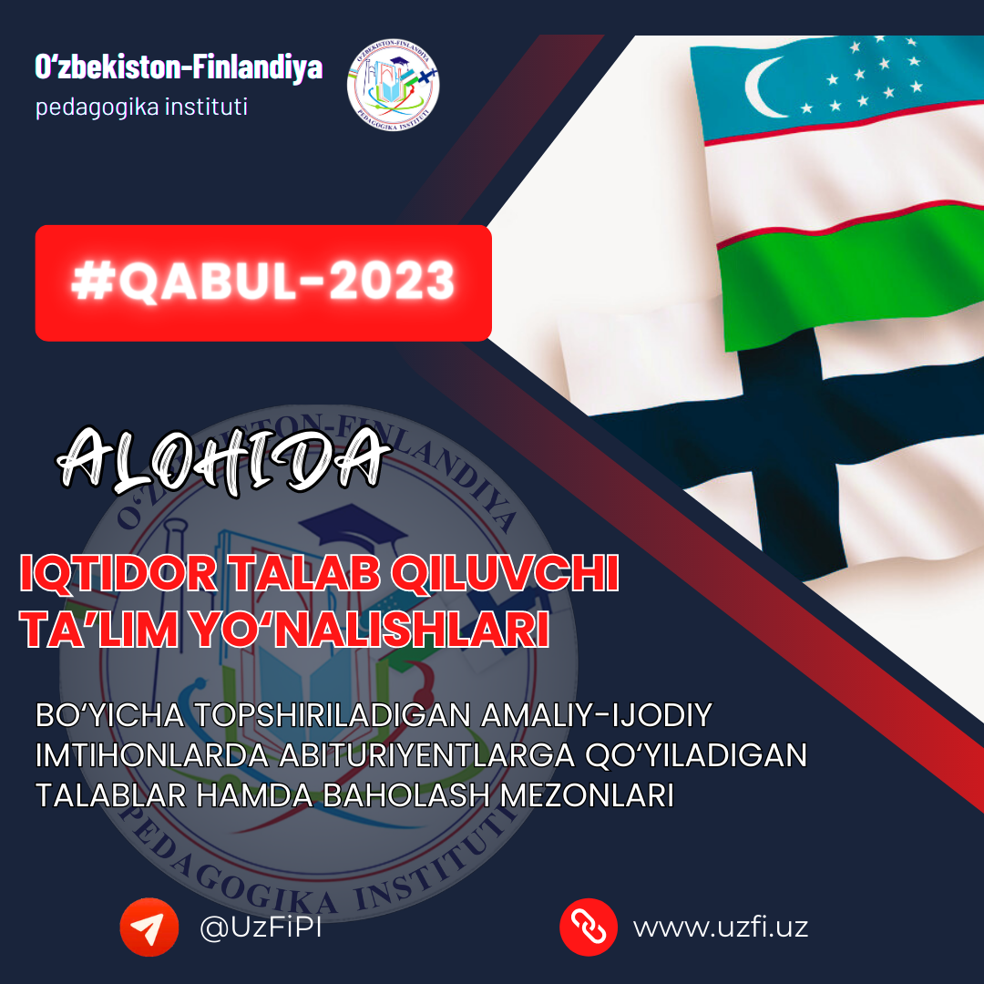 Professional (creative) exam requirements, programs and evaluation criteria held at the Uzbekistan-Finland Pedagogical Institute