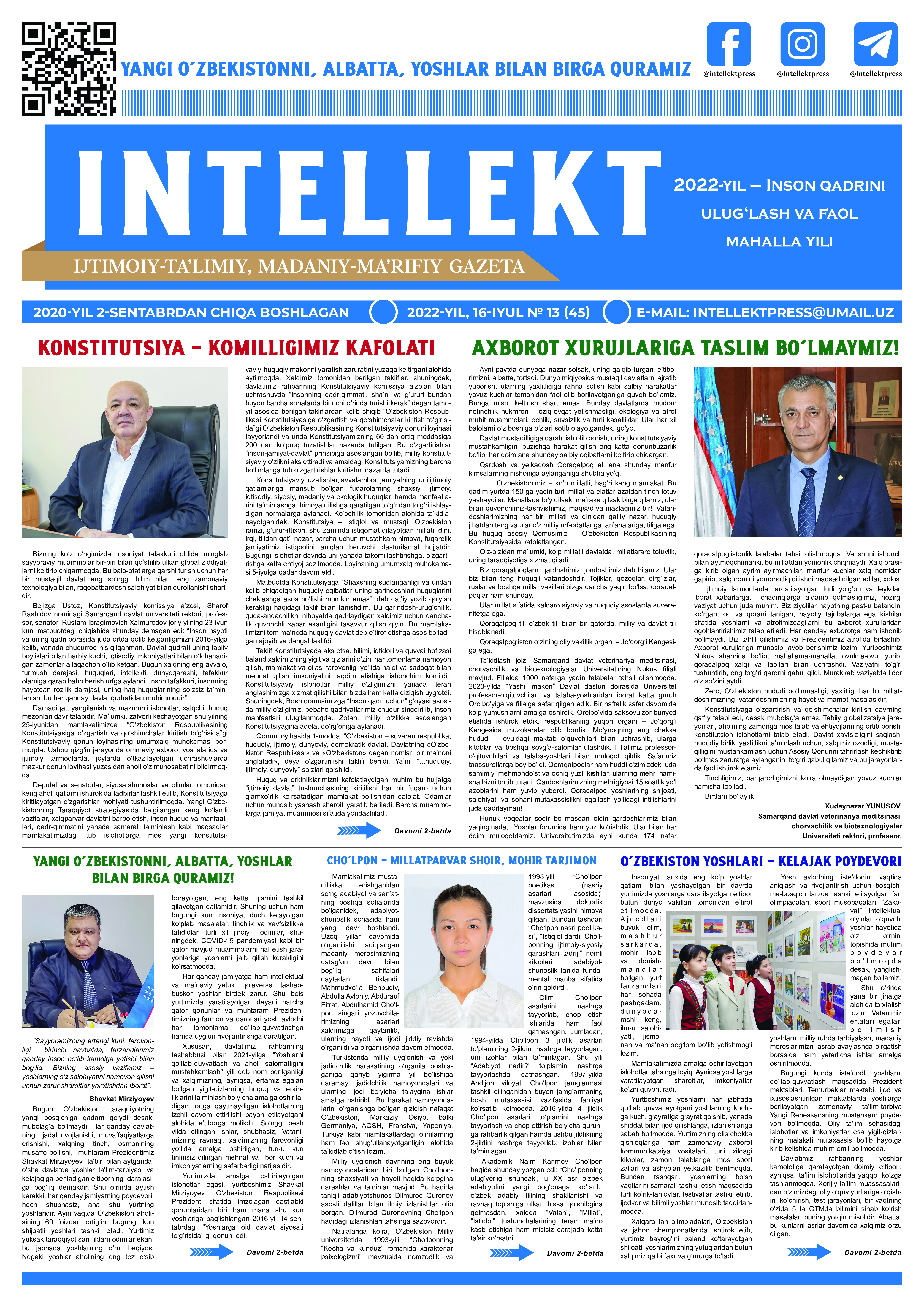 "Intellekt" gazetasining 13-sonida O'zbekiston-Finlandiya pedagogika instituti direktori, professor Begmatov Akram Xasanovichning "KONSTITUTSIYA – KOMILLIGIMIZ KAFOLATI" mavzusidagi maqolasi chop etildi.
