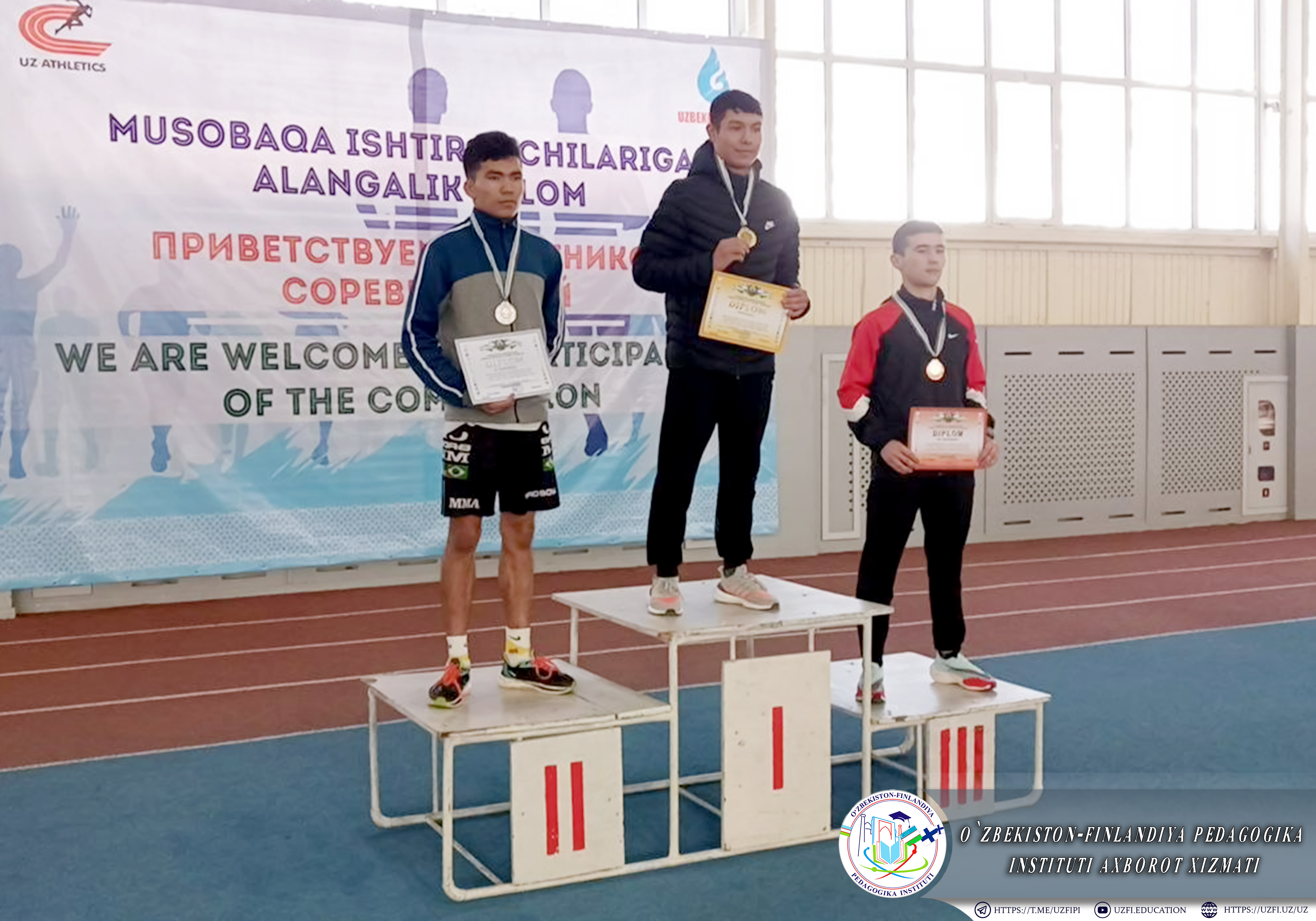 O‘zbekiston-Finlandiya pedagogika instituti "Aniq-tabiiy fanlar va jismoniy madaniyat" fakulteti 128-guruh talabasi Bobomurodov Namozbek O'ktamovich 2023-yilning 24-27-yanvar kunlari o'tkazilgan sportning yengil atletika turi bo'yicha erkaklar va ayollar o'rtasida O'zbekiston kubogi hamda U-20 O'zbekiston chempionatining 800 metrga yugurish turida 2:01:28 natija qayd etib, faxrli 2-o'rinni qo'lga kiritdi.
