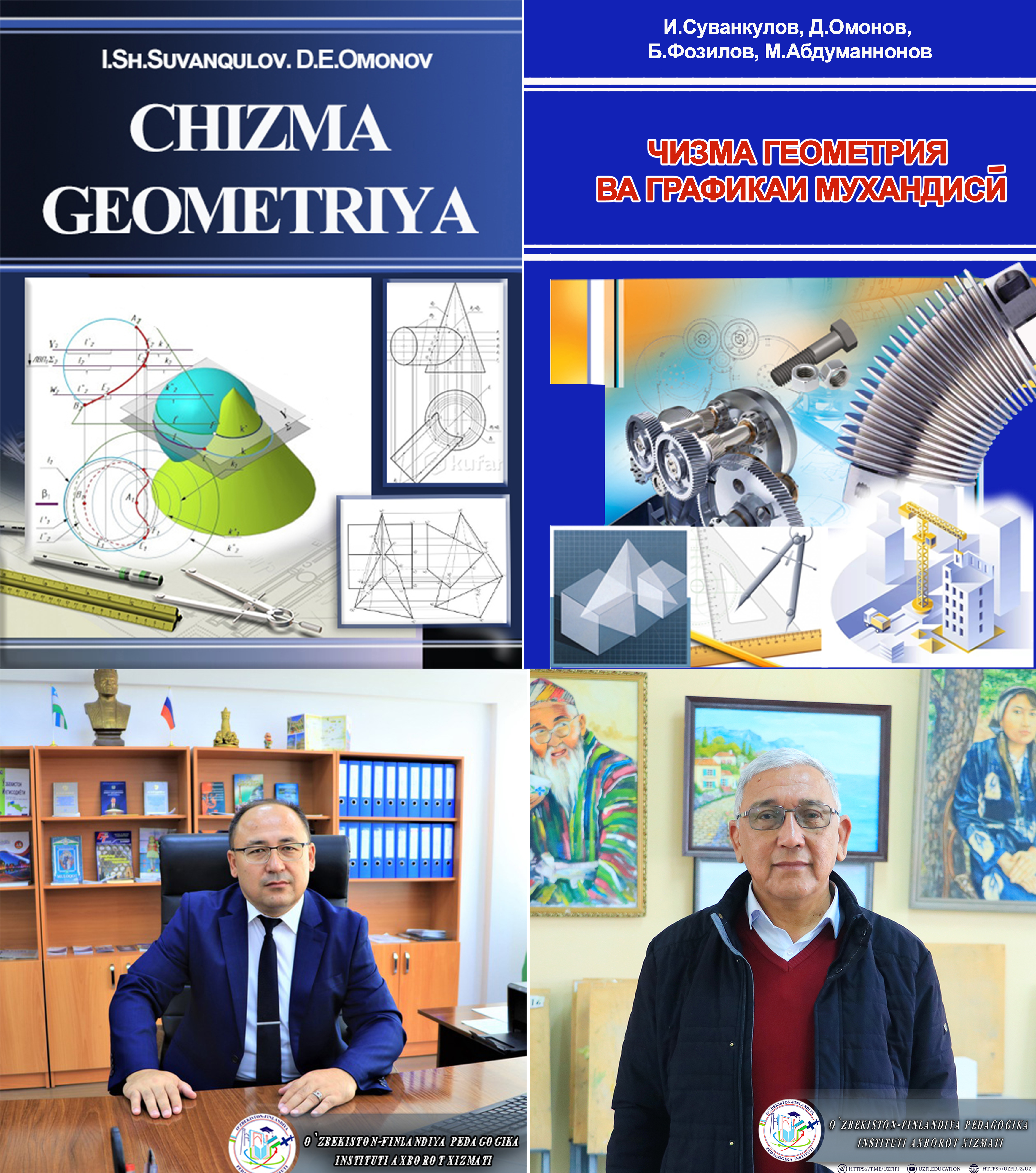 O‘zbekiston-Finlandiya pedagogika instituti Tasviriy san’at va muhandislik grafikasi kafedrasi mudiri professor D.Omonov hamda kafedra o‘qituvchisi professor I.Suvonqulovlarning hammualliflikdagi o‘zbek tilida “CHIZMA GEOMETRIYA” nomli o‘quv qo‘llanmasi va tojik tilidagi “CHIZMA GEOMETRIYA VA GRAFIKAI MUXANDISY” nomli darsliklari chop etildi.