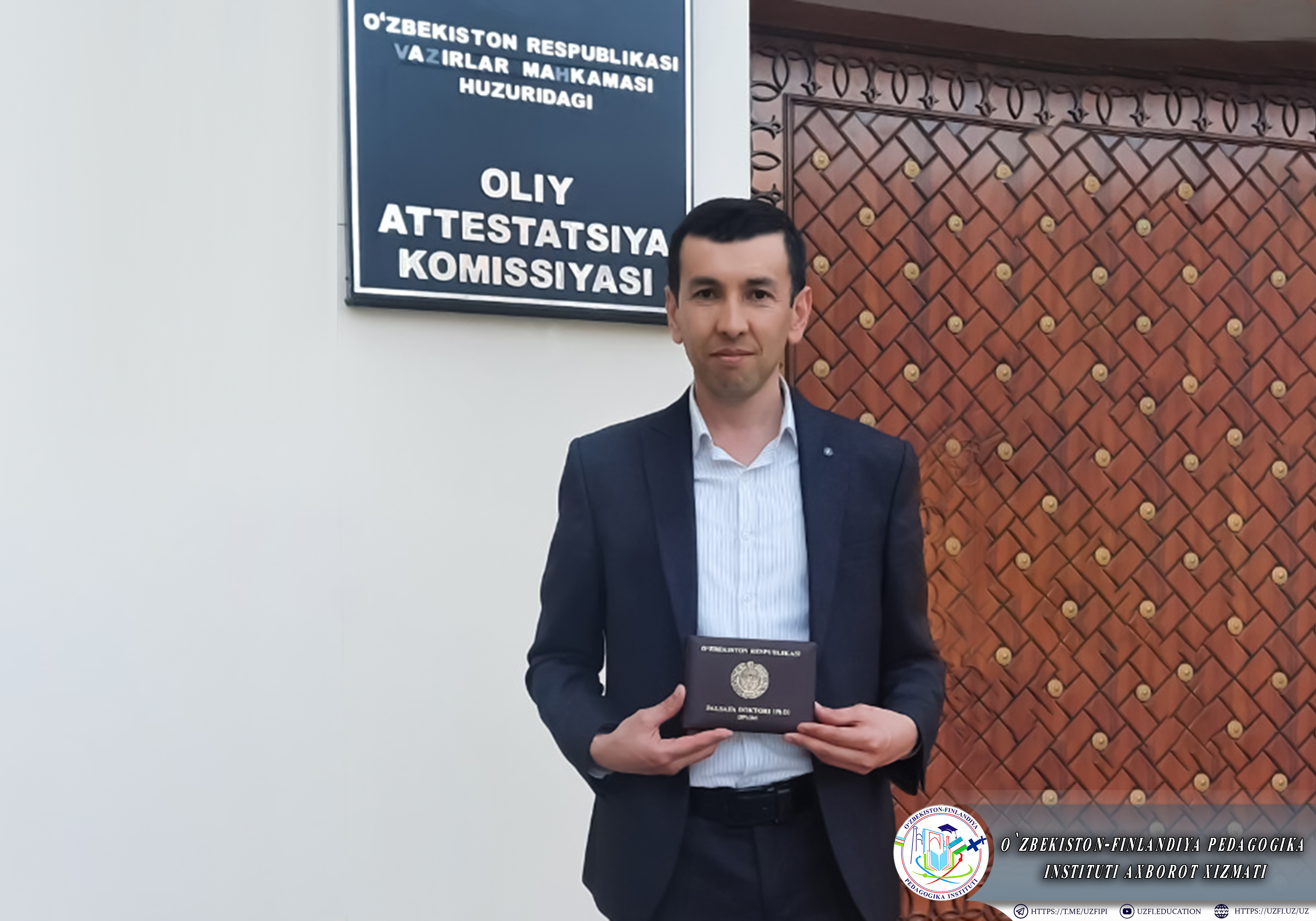 O‘zbekiston-Finlandiya pedagogika instituti Ilmiy tadqiqotlar, innovatsiyalar va ilmiy pedagogik kadrlar tayyorlash bo‘limi boshlig‘i Ismoilov Alisher Sidikovich fizika-matematika fanlari bo'yicha falsafa doktori (PhD) ilmiy darajasiga ega bo‘ldi