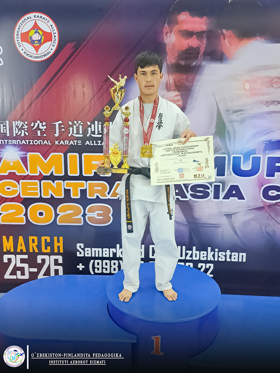 Joriy yilning 25-26-mart kunlari, Samarqand shahrida o‘tkazilgan sportning KYOKUSHINRYU karate turi boʻyicha Markaziy Osiyo chempionatida O‘zbekiston-Finlandiya pedagogika institutining Aniq-tabiiy fanlar va jismoniy madaniyat fakulteti, matematika va informatika ta’lim yo‘nalishi 1-bosqich talabasi Rustamov O‘lmasjon Husan o‘gli munosib ishtirok etib, faxrli birinchi o‘rinni qo‘lga kiritdi.