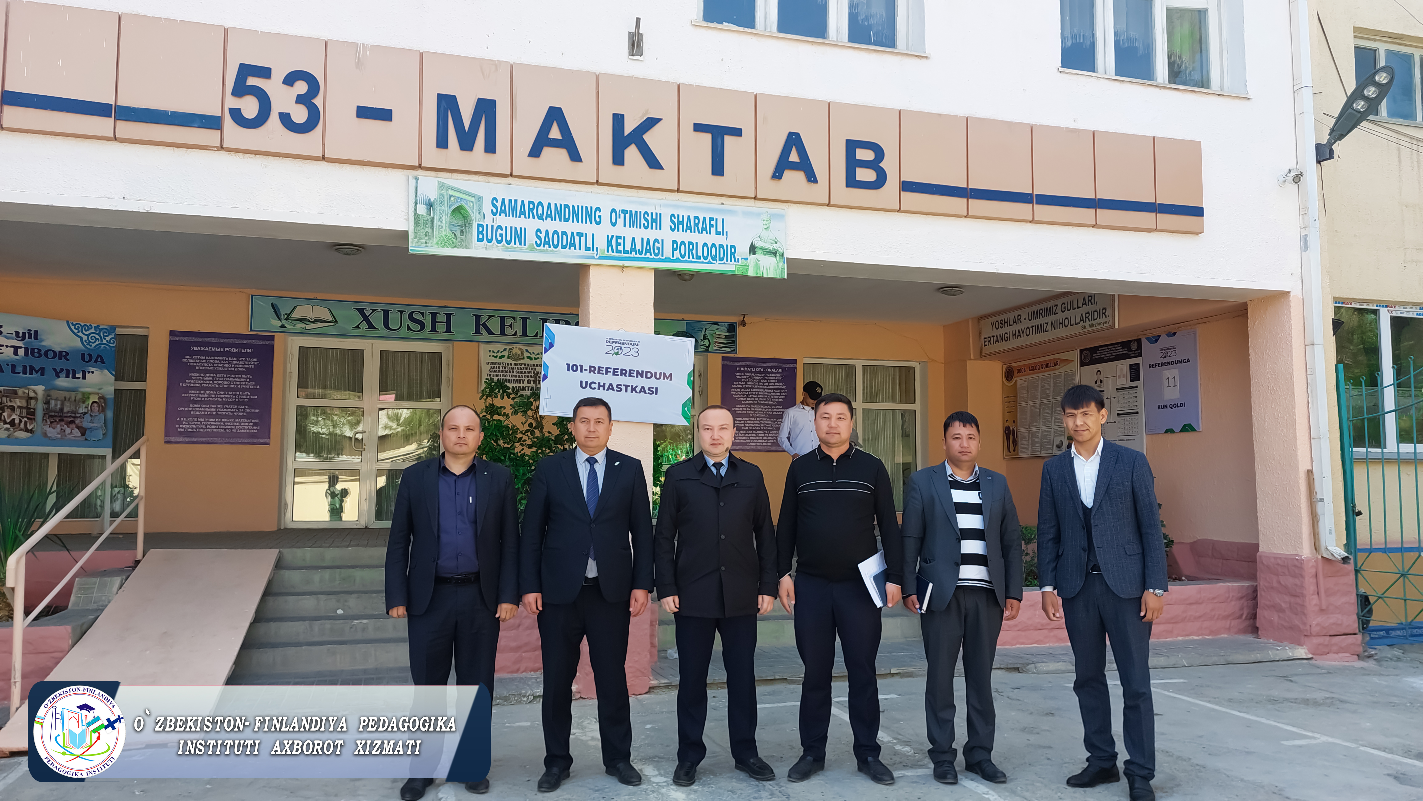 O‘zbekiston Respublikasi Prezidentining 2022-yil 21-iyundagi PQ-289-son “Pedagogik ta’lim sifatini oshirish va pedagog kadrlar tayyorlovchi oliy ta’lim muassasalari faoliyatini yanada rivojlantirish chora-tadbirlari to‘g‘risida”gi qarori ijrosi yuzasidan, O‘zbekiston-Finlandiya pedagogika instituti rektori A.Safarov boshchiligidagi professor-o‘qituvchilar jamoasi Samarqand shahridagi 53-son umumiy o‘rta ta’lim maktabiga tashrif buyurdi.