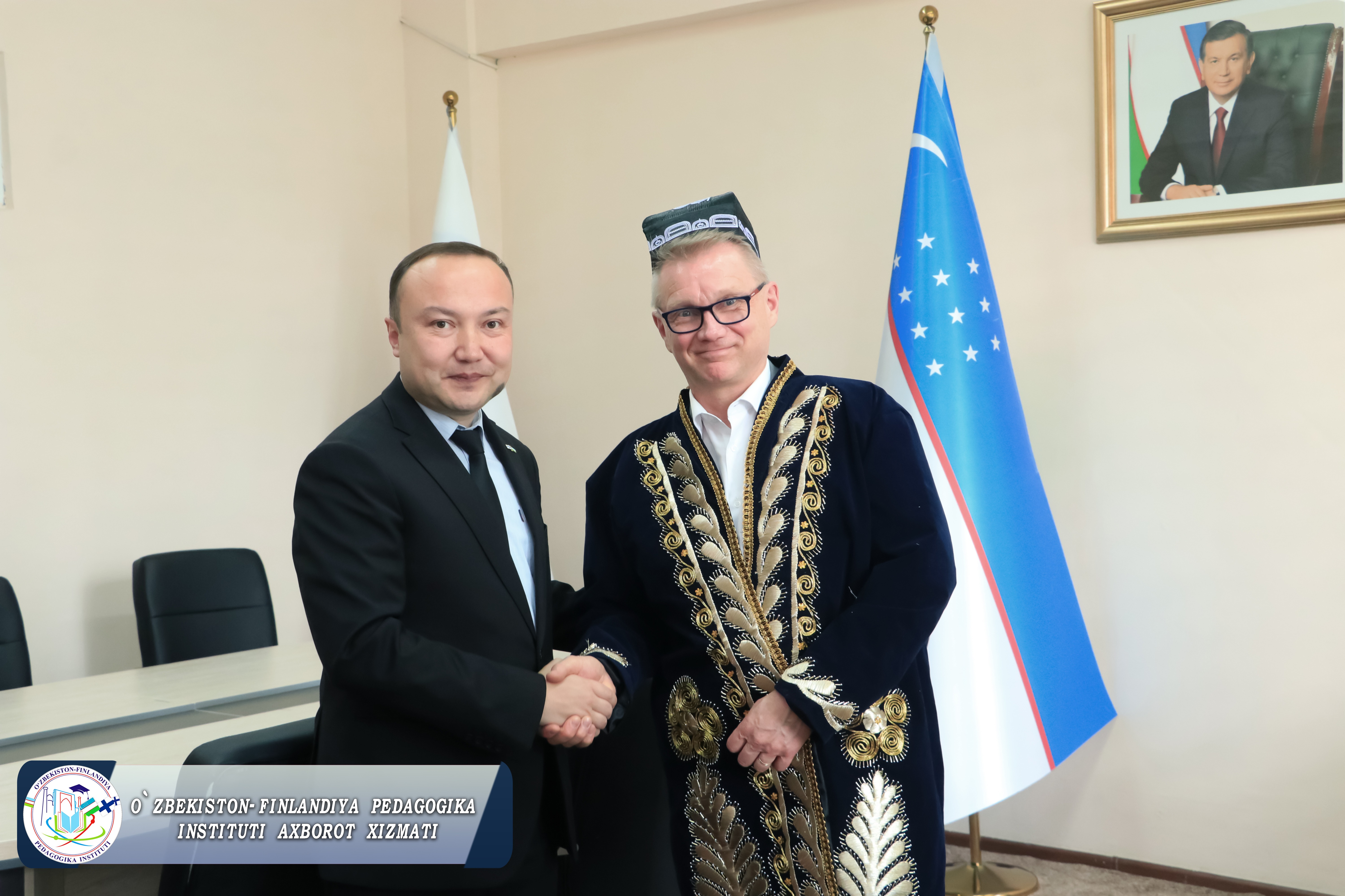 Tashrif so‘ngida institut rektori tomonidan Ilkka Raysanenga esdalik sovg‘alarining topshirilishi tom ma’noda O‘zbekona madaniyatning namoyon bo‘lishi bilan belgilanadi.