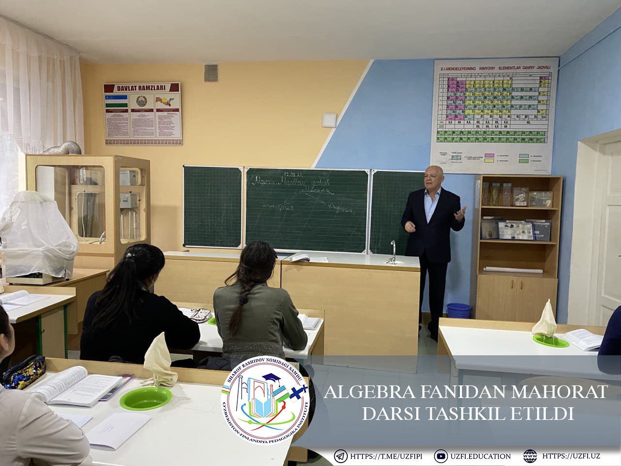 Bugun, 12-fevral Sharof Rashidov nomidagi Samarqand davlat universitetining O’zbekiston-Finlandiya pedagogika instituti direktori v.v.b professor Akram Begmatov Samarqand shahar XTB ga qarashli 66-son umumiy o’rta ta’lim maktabining 11-“A” sinf o’quvchilariga Algebra fanidan mahorat darsi o’tdi.