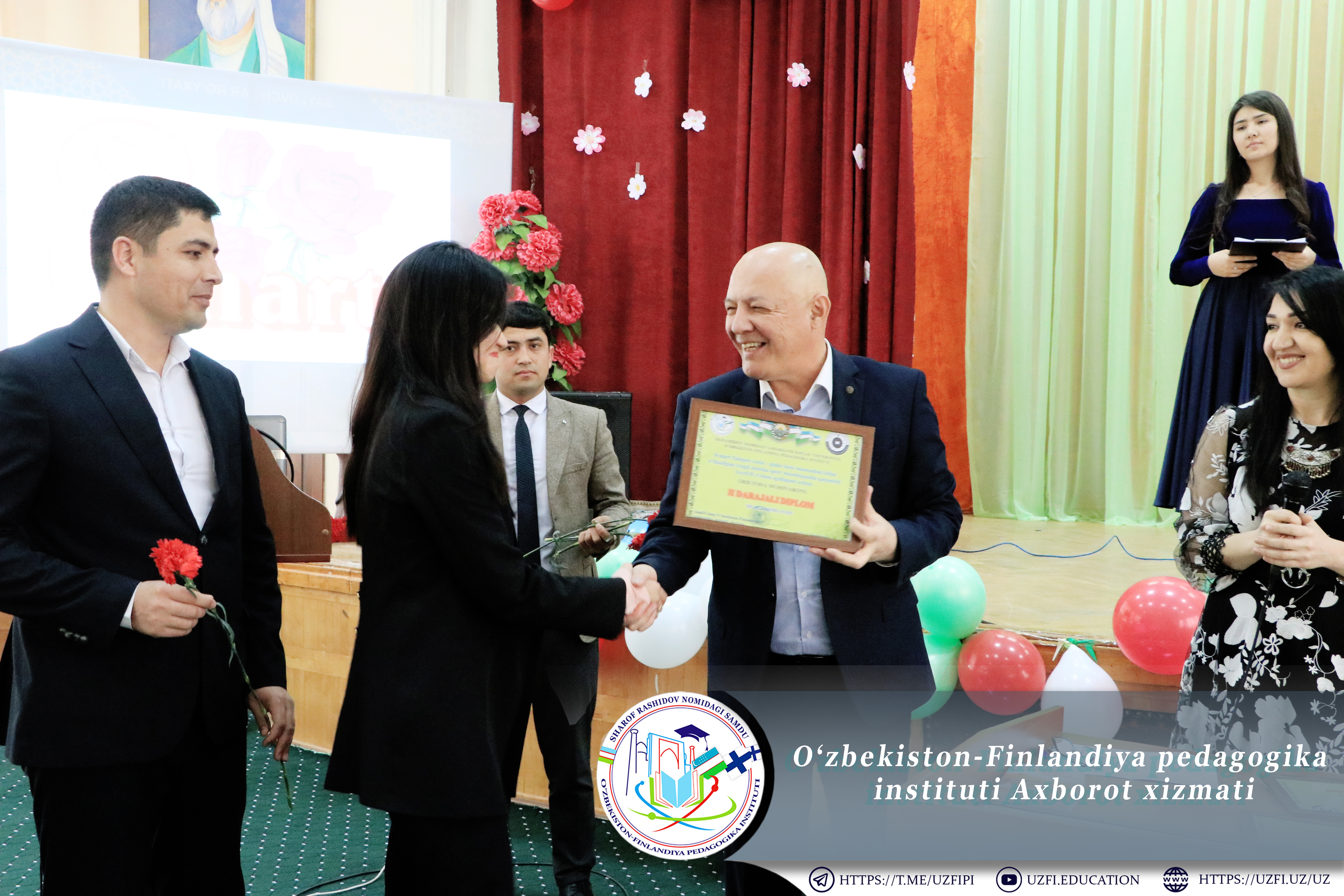 Sharof Rashidov nomidagi Samarqand davlat universitetining O’zbekiston-Finlandiya pedagogika institutida tashkil etilgan tantanali tadbirni institut direktori Akram Begmatov kirish so’zi bilan ochib berdi.