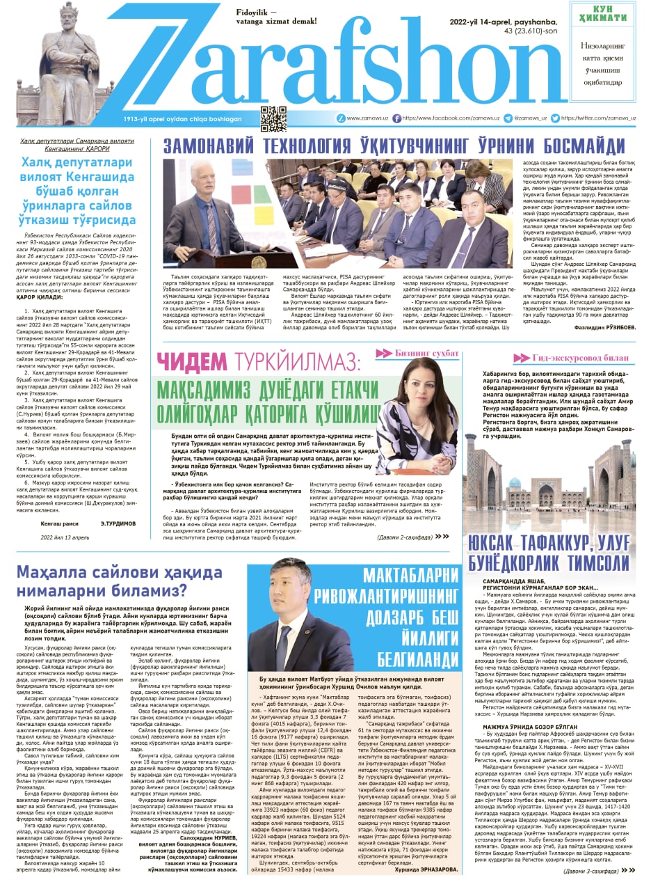 Bu haqida Samarqand viloyat hokimining o'rinbosari Xurshid Ochilov "Zarafshon" gazetasiga bergan intervyusida alohida to'xtalib o'tdi.