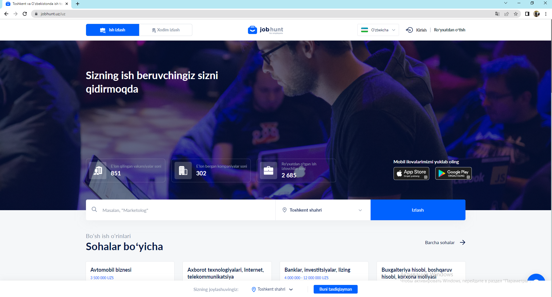 Unda Jobhunt.uz platformasiga tashrif buyuring.